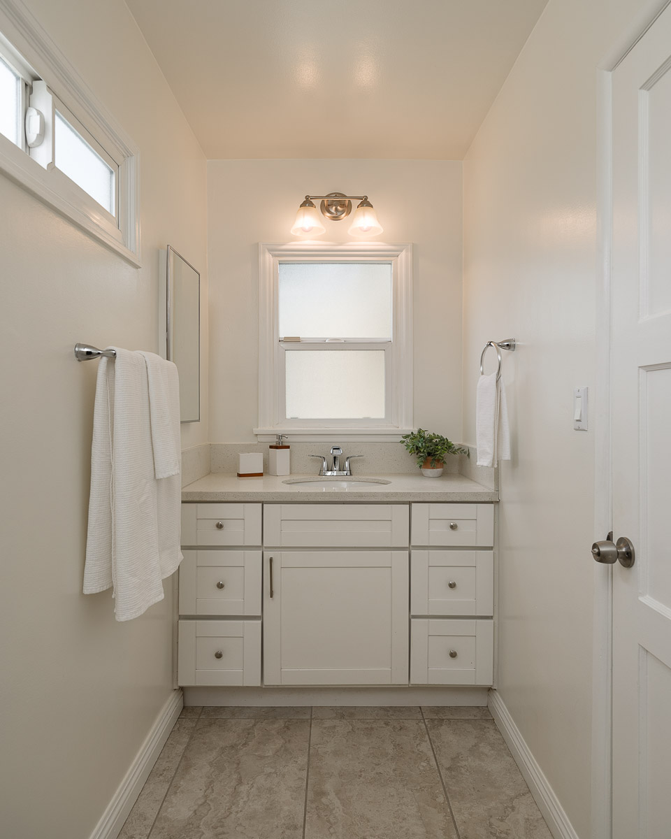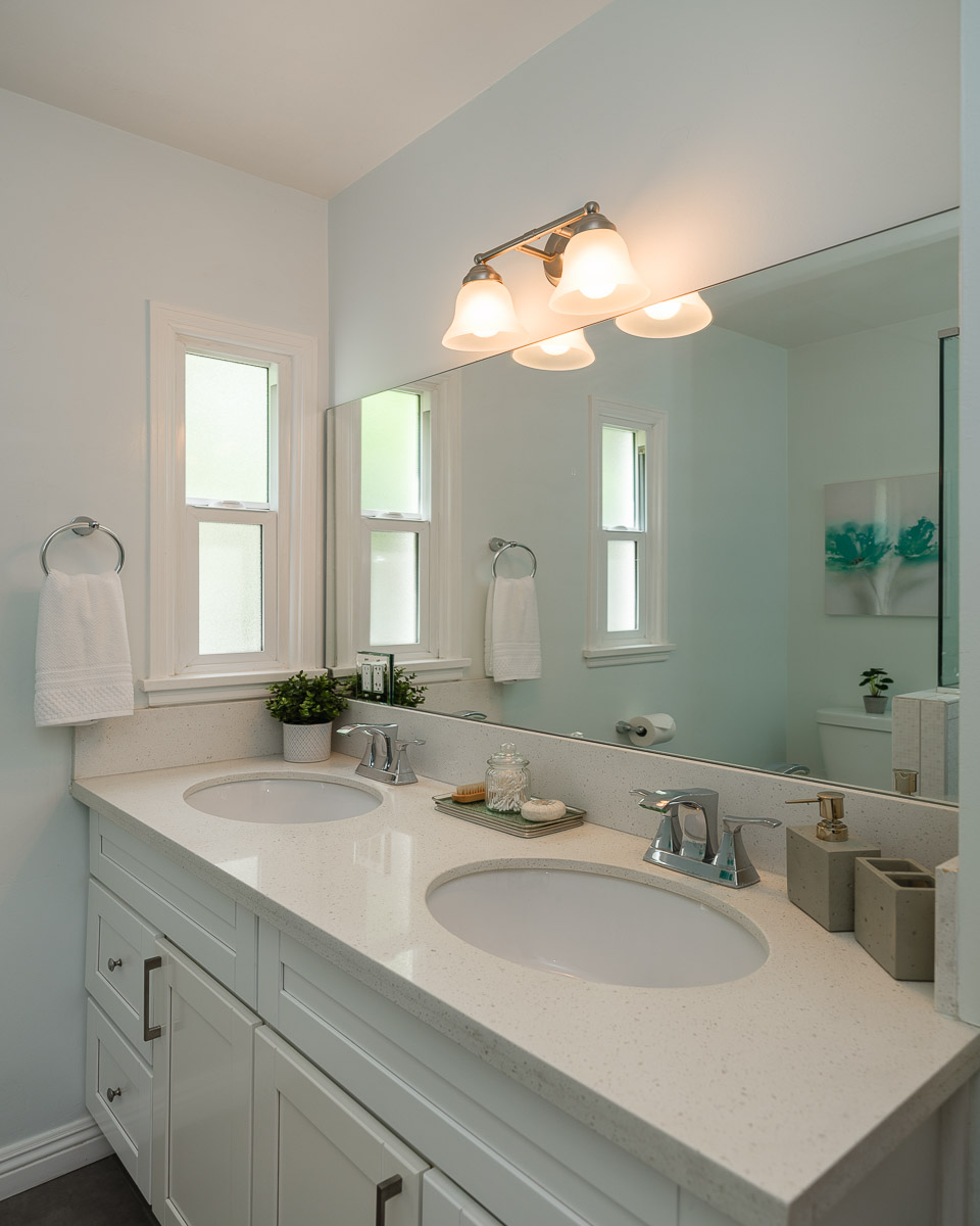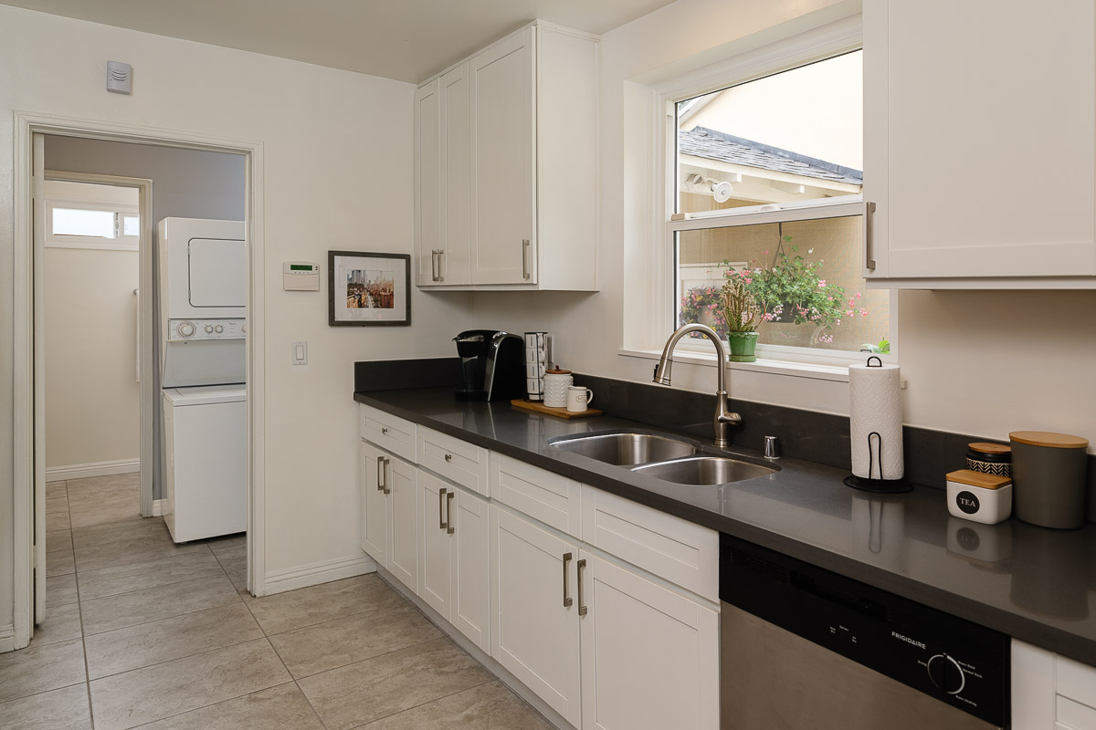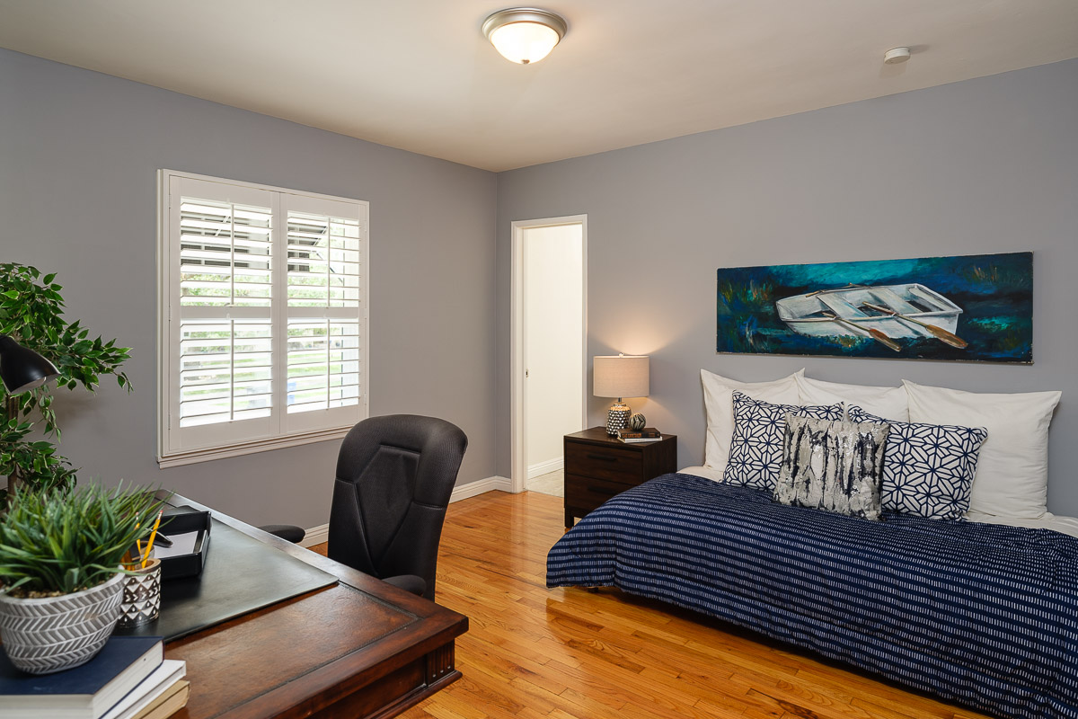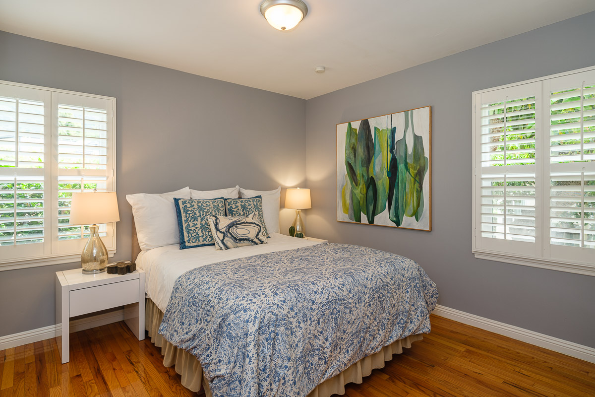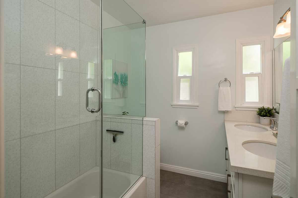 The home’s three spacious bedrooms and two bathrooms, include a remodeled bath with double sinks and a custom vanity. Other highlights include large closets, plantation shutters, crisp, fresh paint and dual paned windows.